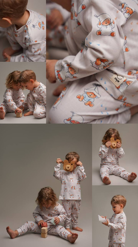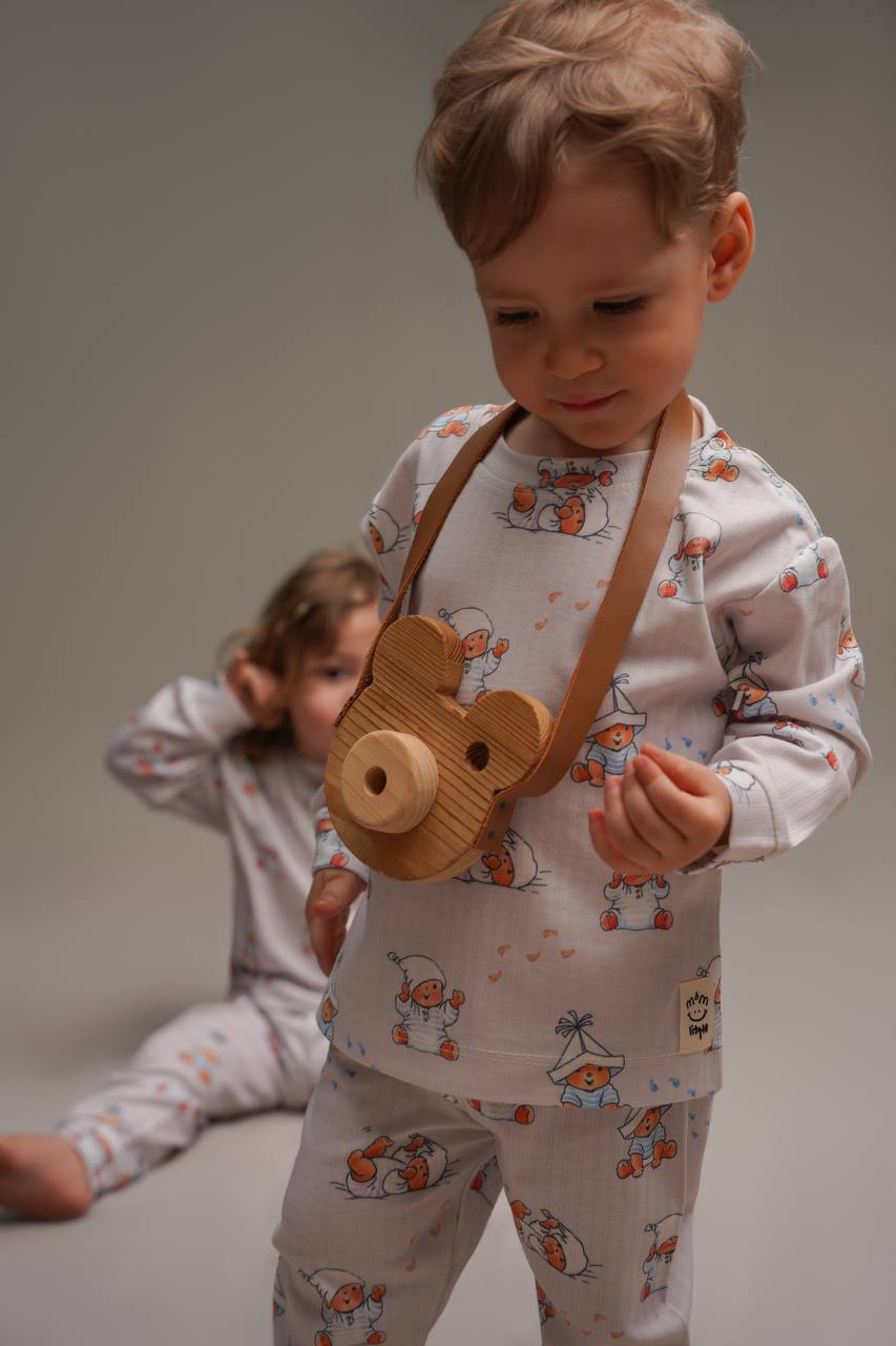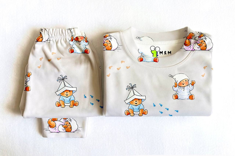 ست خونگی نخ پنبه m&m طرح خرس خوابالو