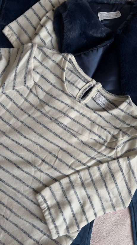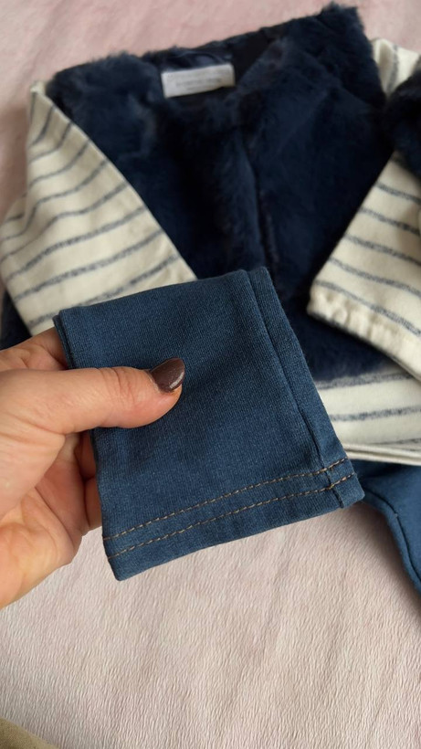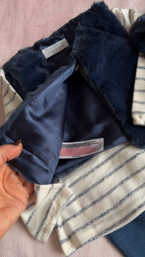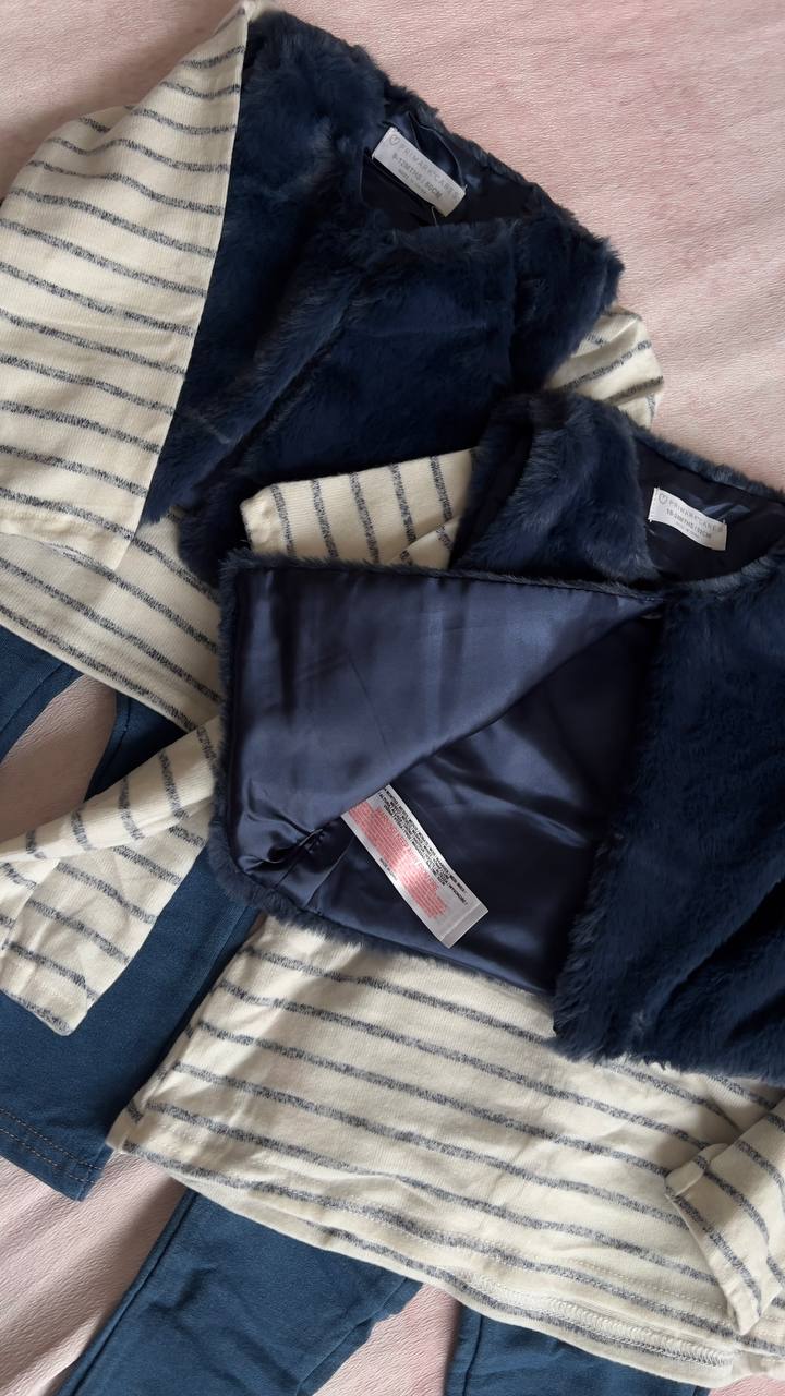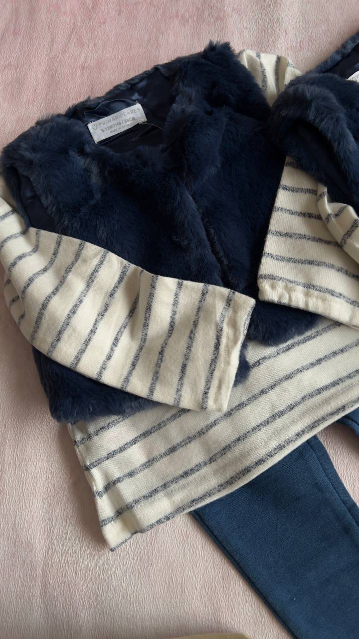 ست ۳ تیکه نوزادی برند Primark اورجینال مدل جلیقه خزدار و بلوز شلوار نخ پنبه کدp101