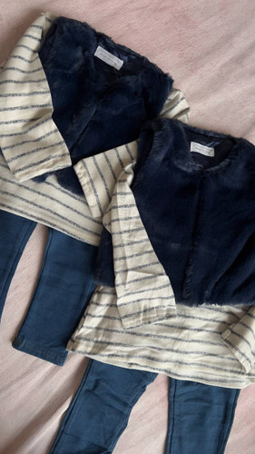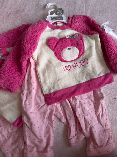 ست ۳ تیکه نوزادی برند Primark اورجینال مدل جلیقه خزدار و بلوز شلوار نخ پنبه کدp101
